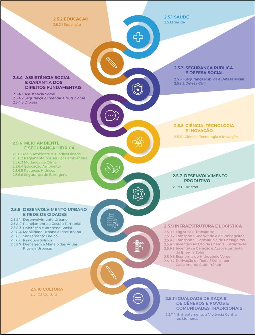 As políticas públicas são executadas por meio de programas finalísticos, que são recortes selecionados de políticas que retratam as agendas de governo, orientando a ação governamental. A Lei Estadual nº 14.647, de 26/12/2023, que estabeleceu o PPA 2024-2027, trouxe as seguintes definições: